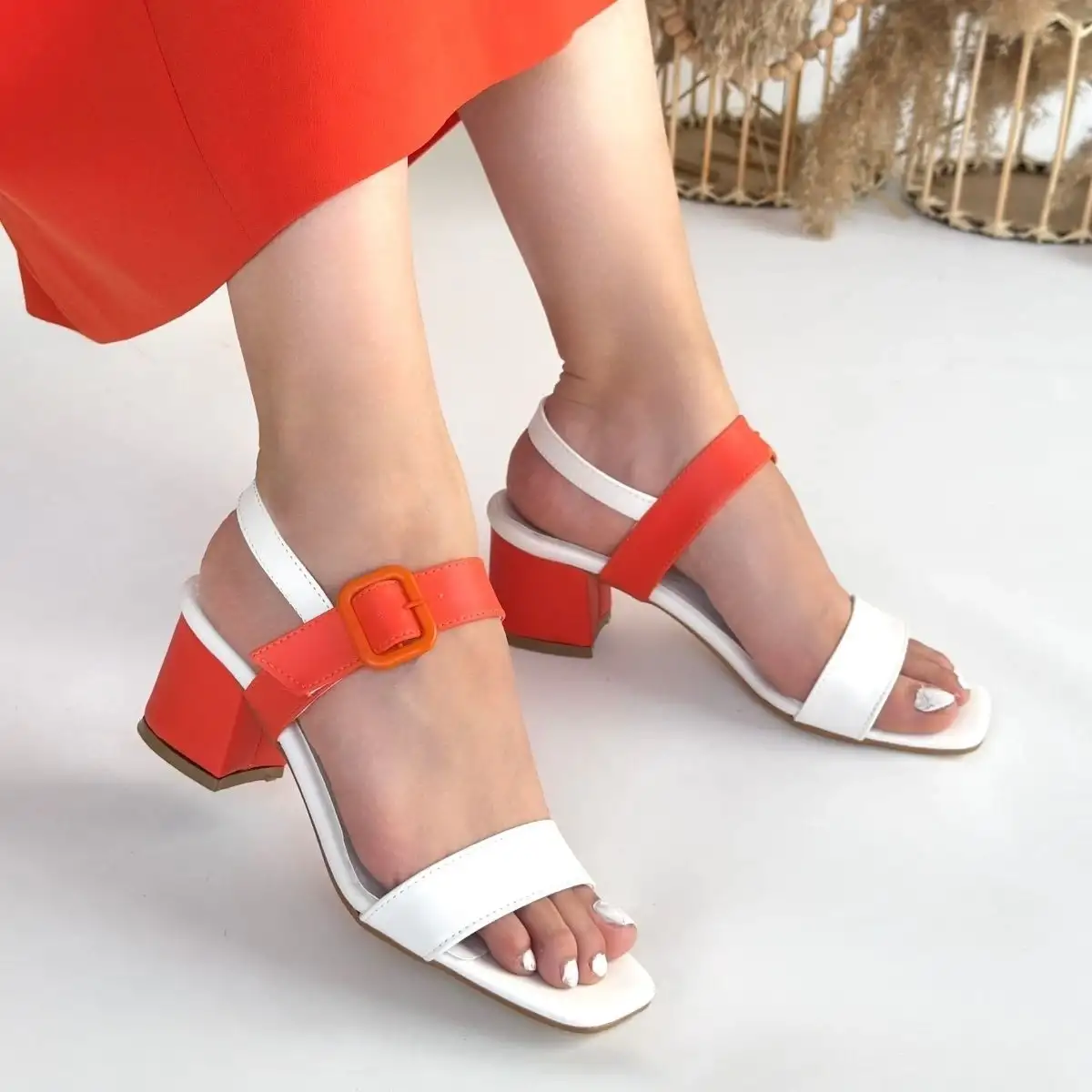 Year Beyaz Cilt Turuncu Detaylı Topuklu Ayakkabı