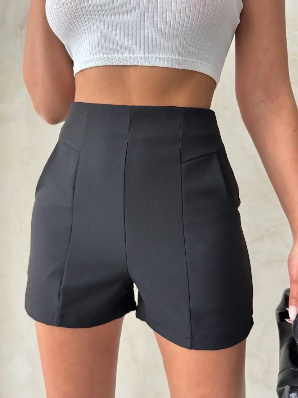 Yüksek bel parçalı double kumaş şort, hem şık hem de rahat bir seçenektir.